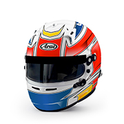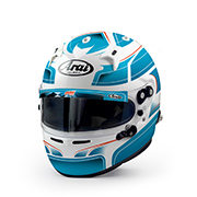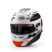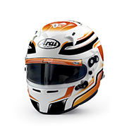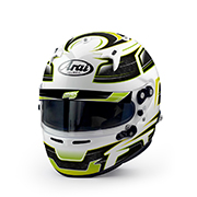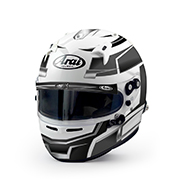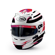 Premium Arai helmet with reinforced shell, 3 mm visor, and FCS-2 system for optimal comfort. FIA 8859-2015 and SNELL SA2020 approved.